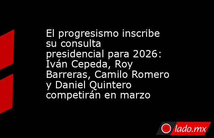 La coalición confirmó que en la consulta presidencial participarán Iván Cepeda, Roy Barreras, Camilo Romero y Daniel Quintero, quienes buscarán convertirse en el candidato único del progresismo para las elecciones de 2026. Cada uno contará con el respaldo de los partidos y movimientos que suscribieron el acuerdo de coalición.