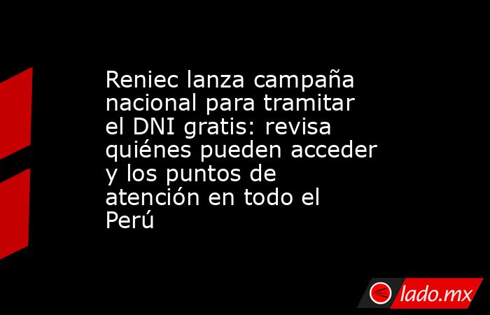 La campaña de DNI gratuito de Reniec abarca Lima, Madre de Dios, Apurímac, Cusco, Ayacucho, Junín, Ancash, Loreto, San Martín, Cajamarca, Ucayali, entre otras regiones. Los puntos de atención se ubican en centros educativos, municipalidades, estadios y oficinas registrales, con el fin de acercar el servicio a la mayor cantidad de ciudadanos posible.
