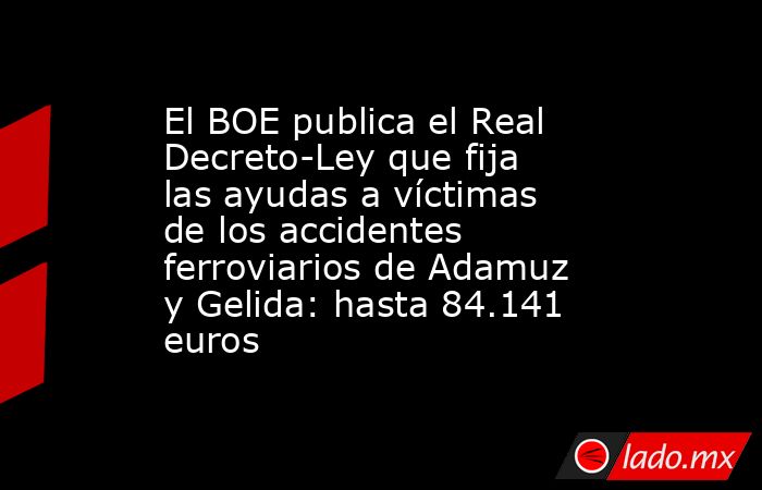 El Gobierno aprobaba ayer un Real Decreto-Ley de medidas urgentes de apoyo a las víctimas de los accidentes de tren de Gelida y Adamuz que contempla indemnizaciones por un total de 20 millones de euros. Hoy miércoles, el BOE ha publicado el texto, que establece las ayudas económicas para las víctimas y sus familiares. Ya en vigor, fija las cuantías y detalla el procedimiento para acceder a las indemnizaciones, que oscilan entre los 2.404 euros y los 84.141 euros en función de la gravedad de las lesiones sufridas.