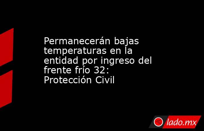 La Coordinación Estatal de Protección Civil (CEPC), informó que durante la tarde noche de este jueves se prevé el ingreso del frente frío número 32 a la frontera norte del país, lo que generará bajas temperaturas en la entidad, particularmente en la Sierra Tarahumara.