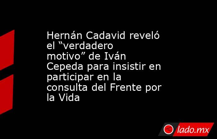 En una nueva arremetida contra el senador y candidato presidencial del Pacto Histórico Iván Cepeda, el representante a la Cámara por el Centro Democrático Hernán Cadavid reveló el jueves 29 de enero el que sería el “verdadero motivo” por el que el político de izquierda buscaría, según él, participar “a toda costa” en la consulta interpartidista del Frente por la Vida: que está pactada para el domingo 8 de marzo, pero que tendría en duda al líder de izquierda por motivos jurídicos.
