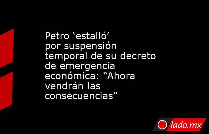El primer mandatario rechazó el accionar de los magistrados de la Corte, advirtiendo sobre serias consecuencias que podrían presentarse en el país debido a la suspensión del decreto. Aseguró que de esta manera se está protegiendo la economía de las personas más adineradas de Colombia y que, por eso, la crisis fiscal empeorará.