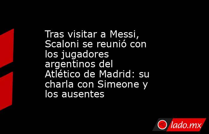 El diario español Marca brindó precisiones de la asistencia de Scaloni al Cerro del Espino, centro deportivo del Colchonero ubicado en la región madrileña de Majadahonda. El Gringo mantuvo una reunión con su par del Atleti, Diego Simeone, y los colaboradores del Cholo, Gustavo López y Nelson Vivas. El periódico destacó la buena relación que une a los técnicos y el cónclave sirvió para consensuar “la mejor manera de cuidar y potenciar a sus futbolistas”.