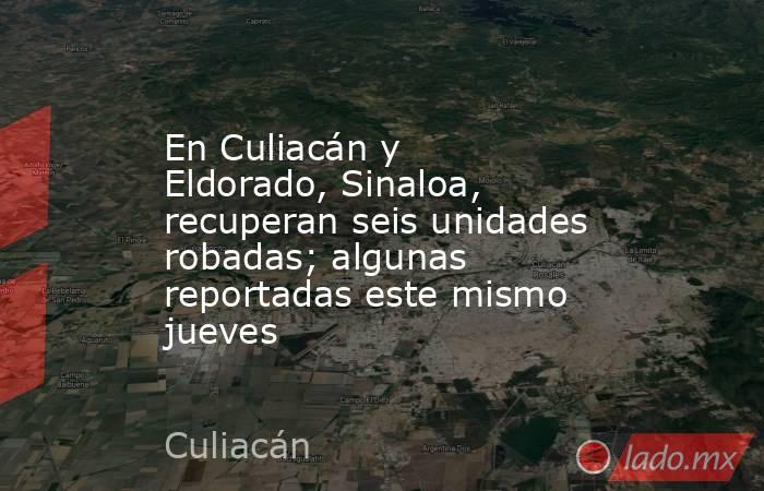 Culiacán, Sinaloa.- En los municipios de Culiacán y Eldorado, se recuperaron seis unidades con reporte de robo, informó la Secretaría de Seguridad Pública de Sinaloa este jueves 29 de enero de 2026.