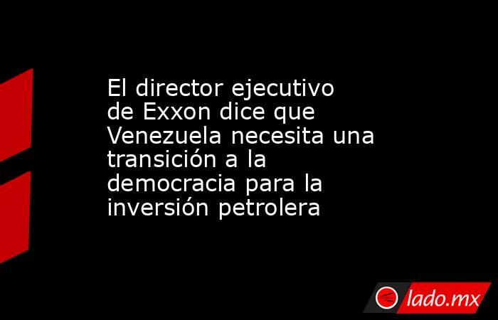 ExxonMobil Venezuela debe hacer una transición a la democracia antes de que la inversión en la decrépita industria petrolera de la nación sudamericana pueda tener sentido, dijo el viernes el director ejecutivo Darren Woods.