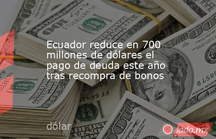 Quito, 30 ene (EFE).- Ecuador logró reducir en cerca de 700 millones de dólares (589 millones de euros al cambio actual) los pagos de servicio de deuda de este año, mediante una estrategia de gestión de pasivos, que derivó en una recompra de los bonos 2030 y 2035, informó este viernes el Ministerio de Economía y Finanzas.