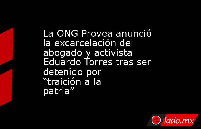 La ONG Programa Venezolano de Educación Acción en Derechos Humanos (Provea) comunicó este viernes la excarcelación del abogado y activista Eduardo Torres, quien permaneció detenido desde mayo del año pasado por supuestos vínculos con un plan para “generar violencia” durante las elecciones regionales y legislativas.