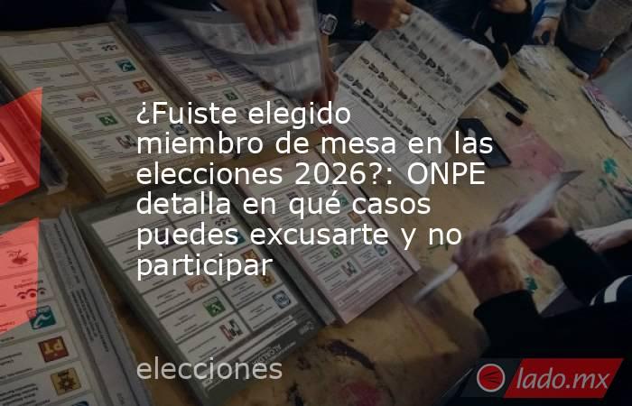 La ONPE indica que los ciudadanos elegidos como miembros de mesa deben presentar su excusa hasta cinco días hábiles después de la publicación del listado definitivo de miembros titulares y suplentes. En casos de salud, la justificación puede tramitarse hasta cinco días calendario antes de la fecha de los comicios.