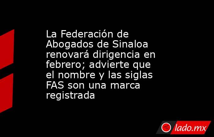 Para enviar un mensaje a quienes se ostentan como Federación de Abogados de Sinaloa. Quiero informarles, decirles que nuestra organización es quien tiene los derechos del logotipo de la Federación de Abogados de Sinaloa que es el mapa en color verde cruzado con unas letras negras que dice FAS. Quisimos instrumentar ese mecanismo a partir de ya. No queríamos generar conflictos que nos desgastaran en temas de demandas, en temas legales, con otros compañeros que presiden otras organizaciones”.