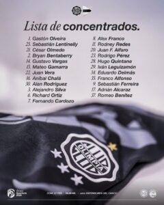 En este sentido, repite convocatoria y está volver a jugar un partido oficial el lateral derecho César Olmedo, quien había sufrido una grave lesión que entorpeció su papel en la temporada anterior.
