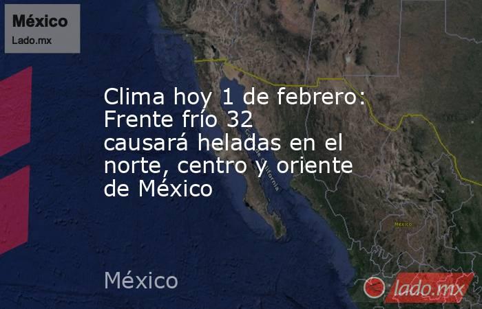 México.- Hoy domingo 1 de febrero, la masa de aire ártico que impulsó al frente número 32, mantendrá el ambiente muy frío a gélido con heladas en el norte, centro y oriente del país.