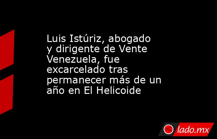 La ONG Foro Penal confirmó este domingo la excarcelación del abogado y dirigente político venezolano Luis Guillermo Istúriz González, quien permanecía detenido desde agosto de 2024 en la cárcel El Helicoide, el principal centro de torturas del chavismo y sede del Servicio Bolivariano de Inteligencia Nacional (Sebin).