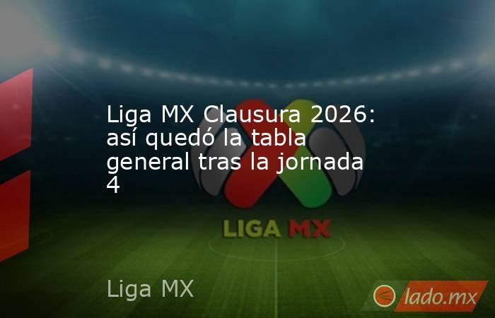 The post Liga MX Clausura 2026: así quedó la tabla general tras la jornada 4 appeared first on Desde Puebla.