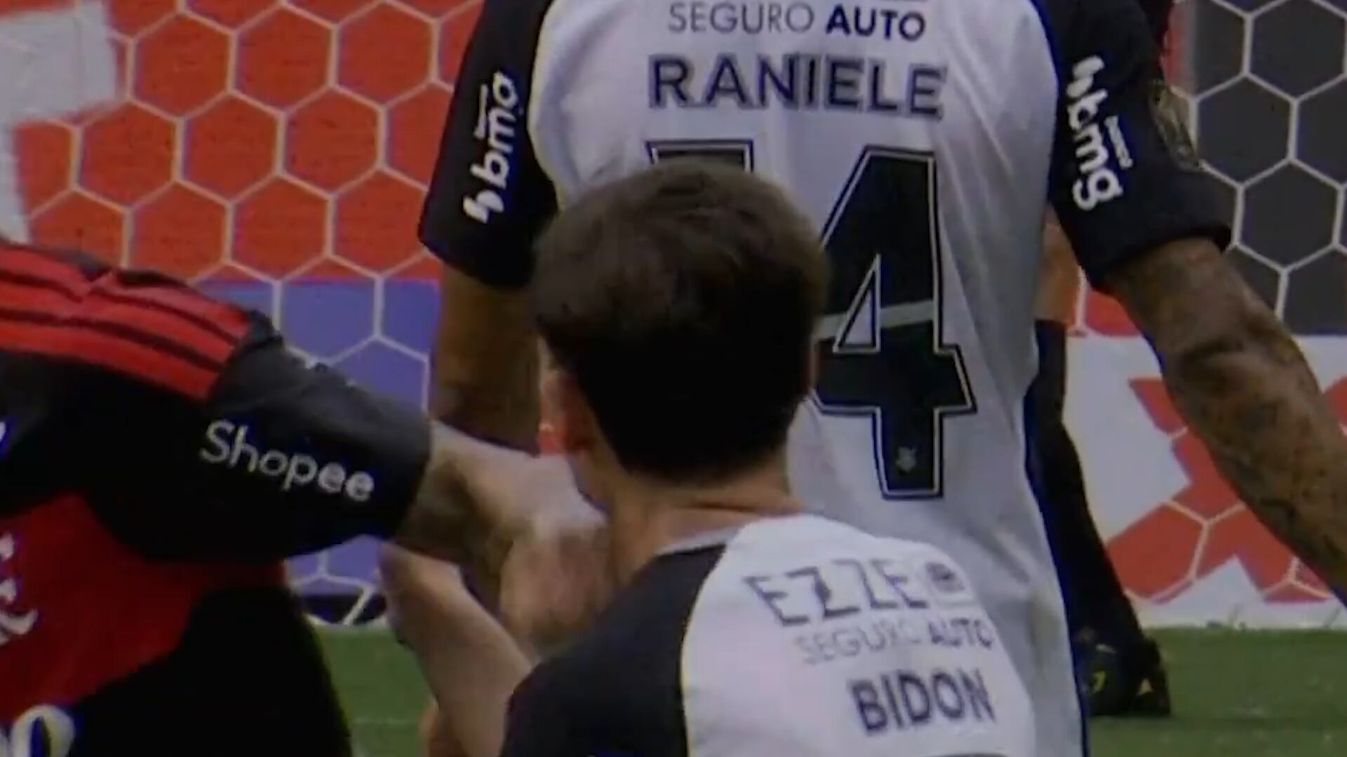 Previo al inicio del segundo tiempo, el árbitro Rafael Klein comunicó a los capitanes de ambos equipos que acudiría al monitor tras la llamada desde el VAR. Tras verificar las imágenes, determinó que existía prueba clara de infracción. El propio Klein explicó su procedimiento a los jugadores, conforme muestra la grabación hecha pública por la CBF: “Durante el intervalo, el equipo VAR encontró evidencias de una conducta violenta en el último lance. Seré llamado ahora para revisar el lance, porque si se trata de una conducta violenta, puedo hacerlo en cualquier momento y lo haré ahora“.