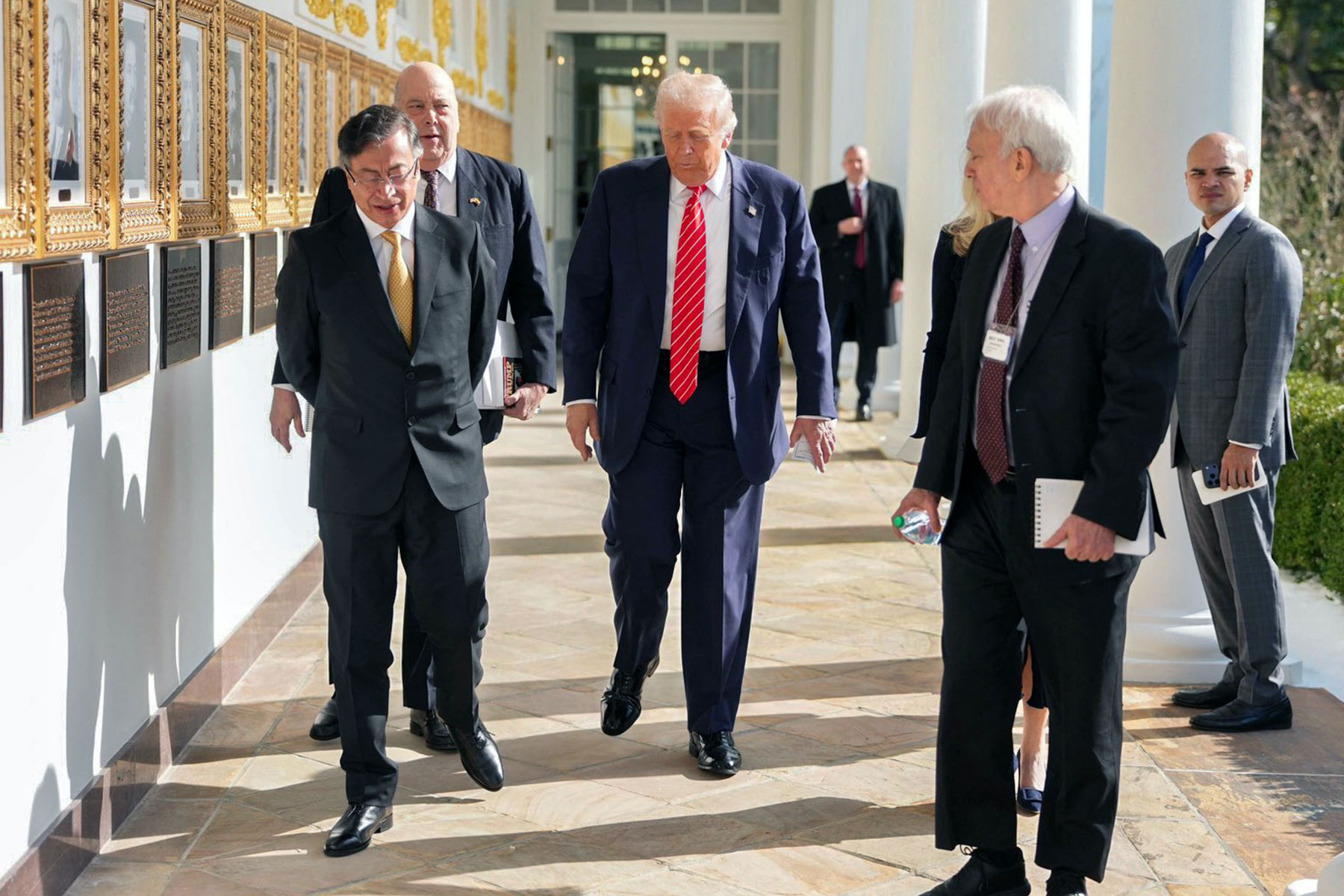 Ayuda en los aranceles y el narcotráfico "La impresión que tengo de una reciente reunión, de hace apenas unas horas, es positiva, en primerísimo lugar" declaró Petro en rueda de prensa tras el encuentro.
