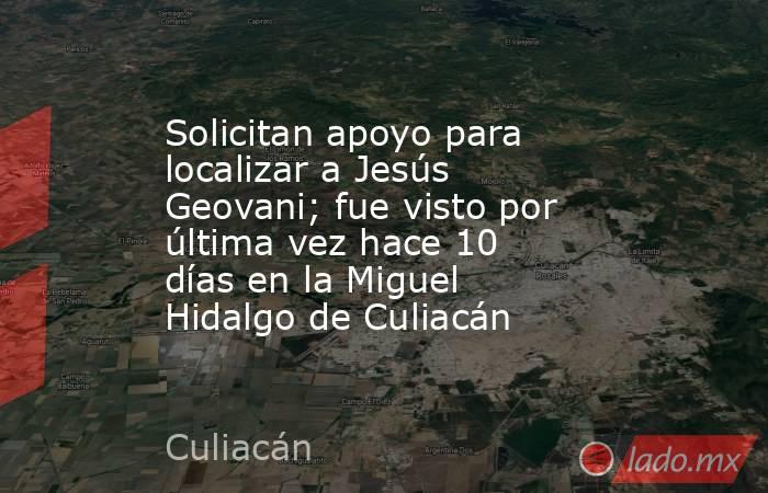 De acuerdo a la ficha de búsqueda emitida en la Comisión Estatal de Búsqueda de Personas, Jesús Geovani fue visto por última vez el día 25 de enero del 2026, aproximadamente a las 12:00 p.m. en la colonia Miguel Hidalgo de Culiacán, Sinaloa. Hasta este momento, sus familiares y seres queridos continúan sin saber nada sobre su paradero.