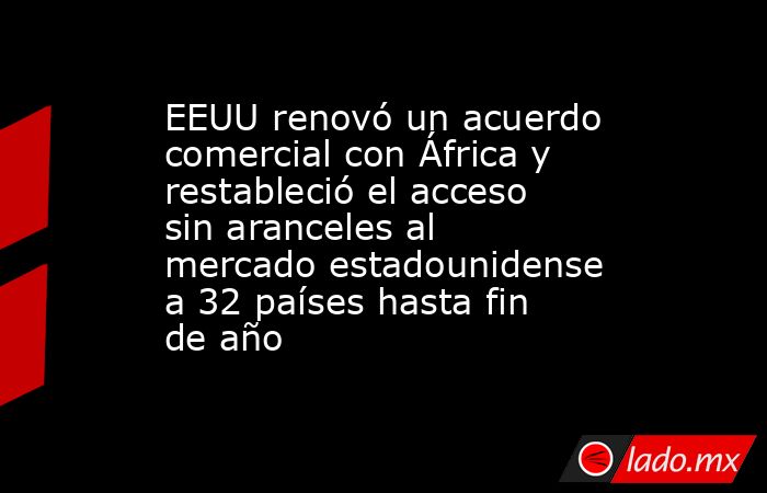 Estados Unidos renovó este martes la Ley de Crecimiento y Oportunidad para África (AGOA) hasta fin de año, un acuerdo que permite a numerosos países africanos acceder al mercado estadounidense sin aranceles, según informó la Oficina del Representante Comercial de Estados Unidos.