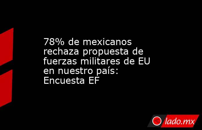La encuesta nacional de El Financiero realizada en enero revela que una mayoría de 78 por ciento de mexicanos está en desacuerdo con el empleo de fuerzas militares de Estados Unidos para combatir a grupos criminales en México. El 21 por ciento dijo sí estar de acuerdo con esa posibilidad.