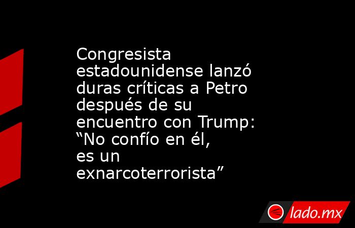 Una vez se materializó la reunión entre Petro y Trump, el miembro de la Cámara de Representantes de los Estados Unidos, Carlos Giménez, lanzó duras criticas hacia Petro. Para el congresista, el gobernante colombiano no es una persona de confiar, ya que tiene cercanía con los regímenes de Cuba y Venezuela.