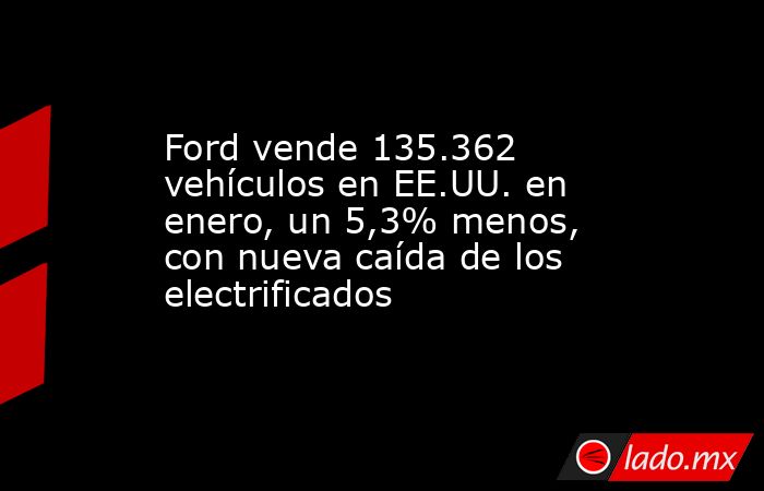 Ford ha vendido 135.362 vehículos en enero en Estados Unidos, un 5,3% menos que en el mismo mes de 2025, de los cuales casi el 90% fueron modelos de combustión interna, según ha informado este miércoles la compañía.