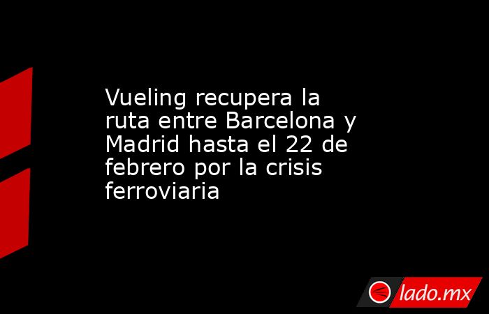 Vueling ha anunciado que recupera, de forma temporal, la ruta entre Barcelona y Madrid, que operará entre el 9 y el 22 de febrero para dar respuesta a las necesidades de los usuarios por la crisis ferroviaria, informa en un comunicado este miércoles.