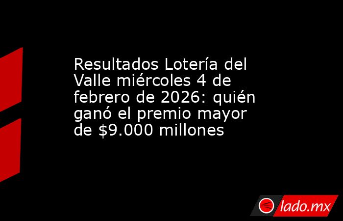 La Lotería del Valle divulgó los números ganadores de su último sorteo celebrado este miércoles 4 de febrero de 2026.