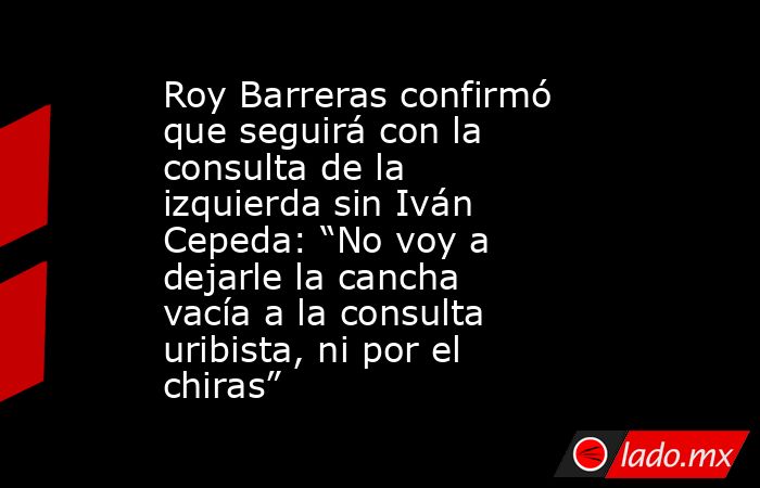 “No voy a dejarle la cancha vacía al tarjetón de la consulta uribista. Yo no voy a perder por W ni a dejar que nos derrote la derecha por salir en desbandada”, enfatizó Barreras durante la entrevista.