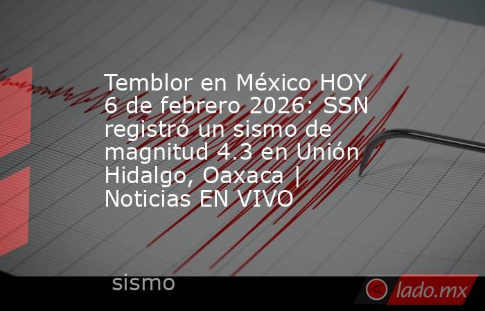 Temblor en México HOY 6 de febrero 2026: SSN registró un sismo de magnitud 4.3 en Unión Hidalgo, Oaxaca | Noticias EN VIVO. Noticias en tiempo real 06 de Febrero, 2026 07:26
