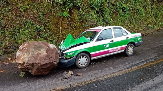 The post Roca gigante aplasta un taxi y por poco causa una tragedia en Misantla first appeared on Diario Gráfico.