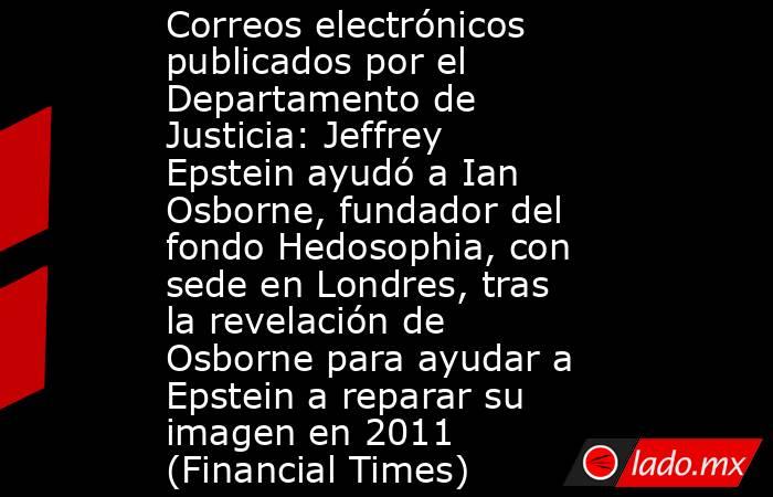 Correos electrónicos publicados por el Departamento de Justicia: Jeffrey Epstein ayudó a Ian Osborne, fundador del fondo Hedosophia, con sede en Londres, tras la revelación de Osborne para ayudar a Epstein a reparar su imagen en 2011 (Financial Times)