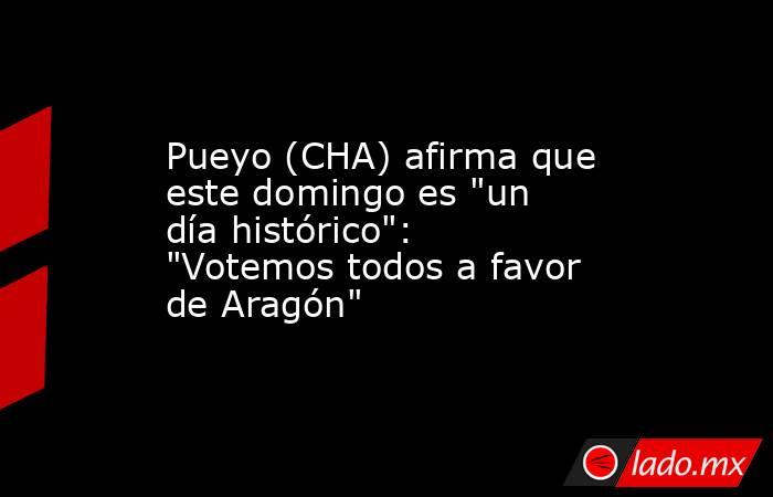 El candidato de CHA a la Presidencia de Aragón, Jorge Pueyo, ha asegurado que este domingo, 8 de febrero, es "un día histórico" para la comunidad autónoma, por lo que ha reclamado: "Votemos todos a favor de Aragón".