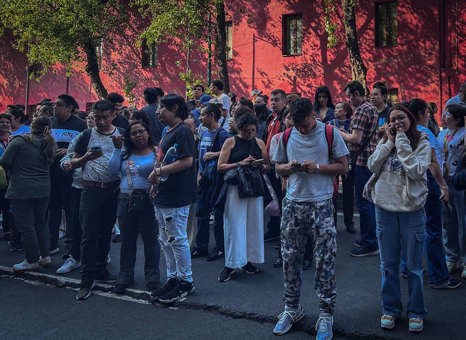 En la colonia Juárez, en la alcaldía Cuauhtémoc, la alerta provocó la movilización de vecinos que desalojaron edificios y se concentraron en la vía pública como medida preventiva, mientras se verificaban posibles riesgos.