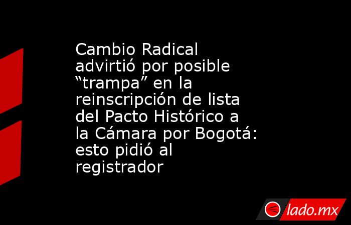 El Partido Cambio Radical solicitó formalmente al registrador nacional, Hernán Penagos, que rechace las inscripciones que se pretendan realizar como consecuencia de las revocatorias de listas del Pacto Histórico a la Cámara de Representantes, ordenadas por el Consejo Nacional Electoral (CNE).