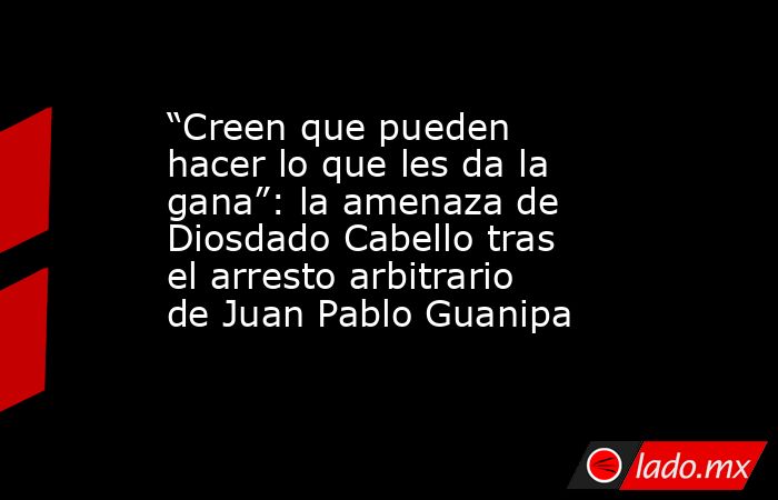 El ministro del Interior del chavismo, Diosdado Cabello, afirmó este lunes que la nueva detención del dirigente opositor Juan Pablo Guanipa se produjo por una supuesta violación de las condiciones impuestas tras su excarcelación, pese a que su familia denunció que fue interceptado en la vía pública por hombres armados sin identificación y sin que se le mostrara orden judicial.