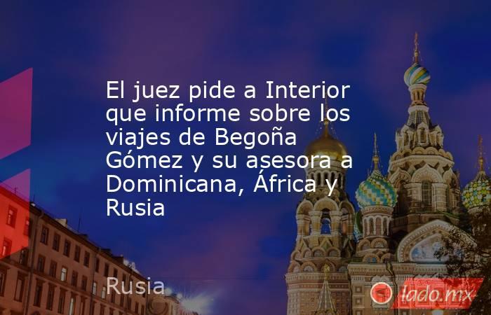 El juez que investiga a Begoña Gómez ha pedido al Ministerio del Interior que le informe en un máximo de 10 días de los viajes que la esposa del presidente del Gobierno y su asesora, Cristina Álvarez, hayan realizado a República Dominicana, República del Congo, República Democrática del Congo, Guinea Ecuatorial, Guinea Bissau y a Rusia.