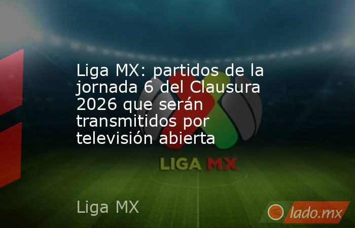 Los partidos de la jornada 6 del Clausura 2026 que serán transmitidos por televisión abierta serán el Puebla vs Pumas, Toluca vs Tijuana, Monterrey vs León y Cruz Azul vs Tigres.