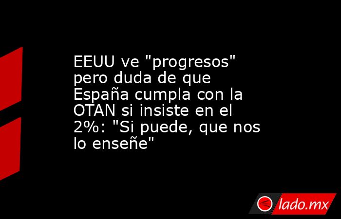 Preguntado en unas declaraciones a la prensa sobre si Washington está en contacto con nuestro país para comprobar si cumple con sus obligaciones y capacidades asignadas por la alianza, ha respondido que "España está haciendo grandes progresos" en el corto plazo, pero que no cree que pueda cumplir con los requerimientos militares de la OTAN si no eleva el gasto en defensa hasta el 5% de su PIB.
