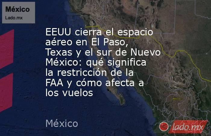 El espacio aéreo de El Paso, Texas, y una zona del sur de Nuevo México quedó cerrado de forma inmediata y temporal por orden de la Administración Federal de Aviación de Estados Unidos (FAA), lo que obligó a suspender todos los vuelos comerciales, de carga y de aviación general en la región.