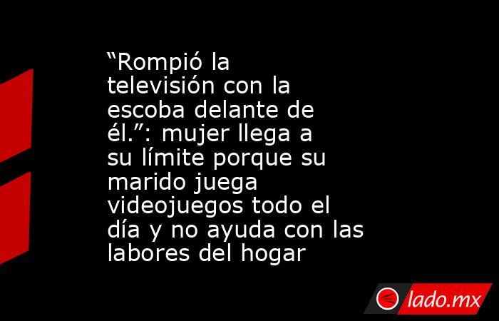 Al entrar a la sala de estar, encuentra a su esposo concentrado frente al televisor, jugando videojuegos.