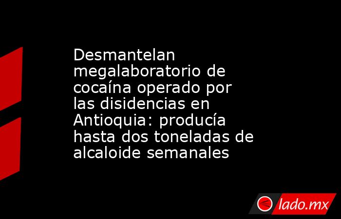 Un operativo coordinado por la Policía Nacional de Colombia, con apoyo de la Fiscalía General de la Nación, el Ejército Nacional, la Fuerza Aeroespacial Colombiana y la Agencia Federal Antidrogas de Estados Unidos (DEA), permitió la destrucción de un megalaboratorio clandestino de cocaína en Antioquia, con una capacidad de producción de hasta dos toneladas semanales y un impacto económico estimado en 100 millones de dólares.