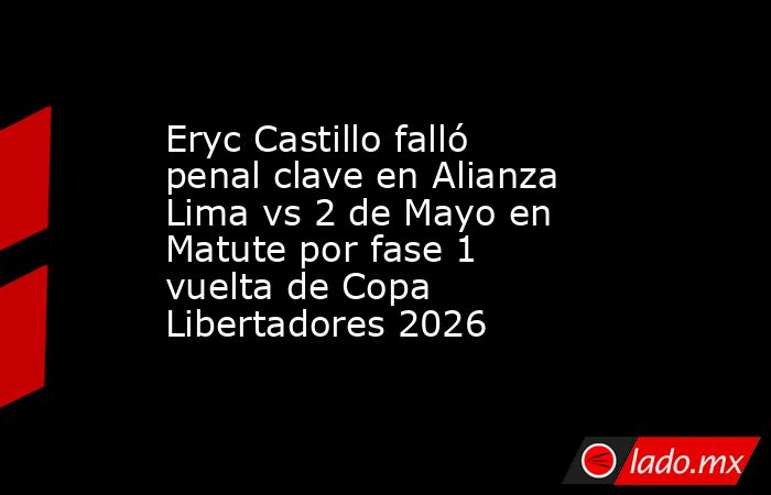 Eryc Castillo contó con la ocasión más clara del Alianza Lima vs Club 2 de Mayo, por la llave de revancha de la Fase 1 de la Copa Libertadores 2026, a partir de un lanzamiento de penal. Nadie pensó, sin embargo, que en un momento tan determinante fallaría su lanzamiento a vista y paciencia de todo Matute.