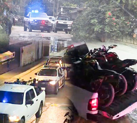 De manera extraoficial se ha logrado saber que en las tareas donde participa la FGE, Ministeriales, Ejército Mexicano, Marina, SSP, Policía Municipal, procedieron a la intervención de tres personas, el aseguramiento de la vivienda y tres motocicletas.