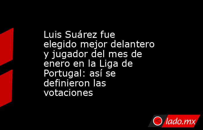 Luis Suárez debutó en enero en la lista oficial de premios de la Liga Portugal, y por partida doble. Tras ser nombrado Jugador Avanzado Continental del Mes, el número 97 de los Leones también ganó el premio al Jugador Betclic del Mes de la Liga Portugal, con un 37,04% de los votos de los entrenadores de la competición.