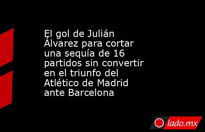 Julián Álvarez dejó atrás una racha de 65 días sin convertir en el Atlético de Madrid. Su gol en el segundo minuto de los tres adicionados selló el 4-0 ante Barcelona como local por las semifinales de la Copa del Rey y parecería haber liquidado la serie con todo un complemento y la vuelta en el Camp Nou por disputar.
