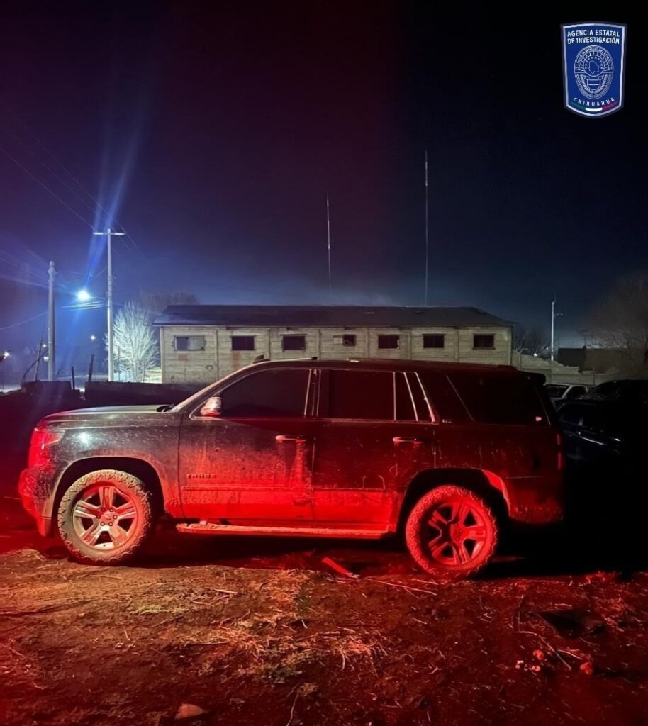 Mientras que en las calles Segunda y 5 de mayo de la citada población, localizaron abandonado una camioneta de la marca Chevrolet, línea Tahoe, modelo 2016, color negro, con reporte de robo del 25 de septiembre de 2025, en Nuevo México.