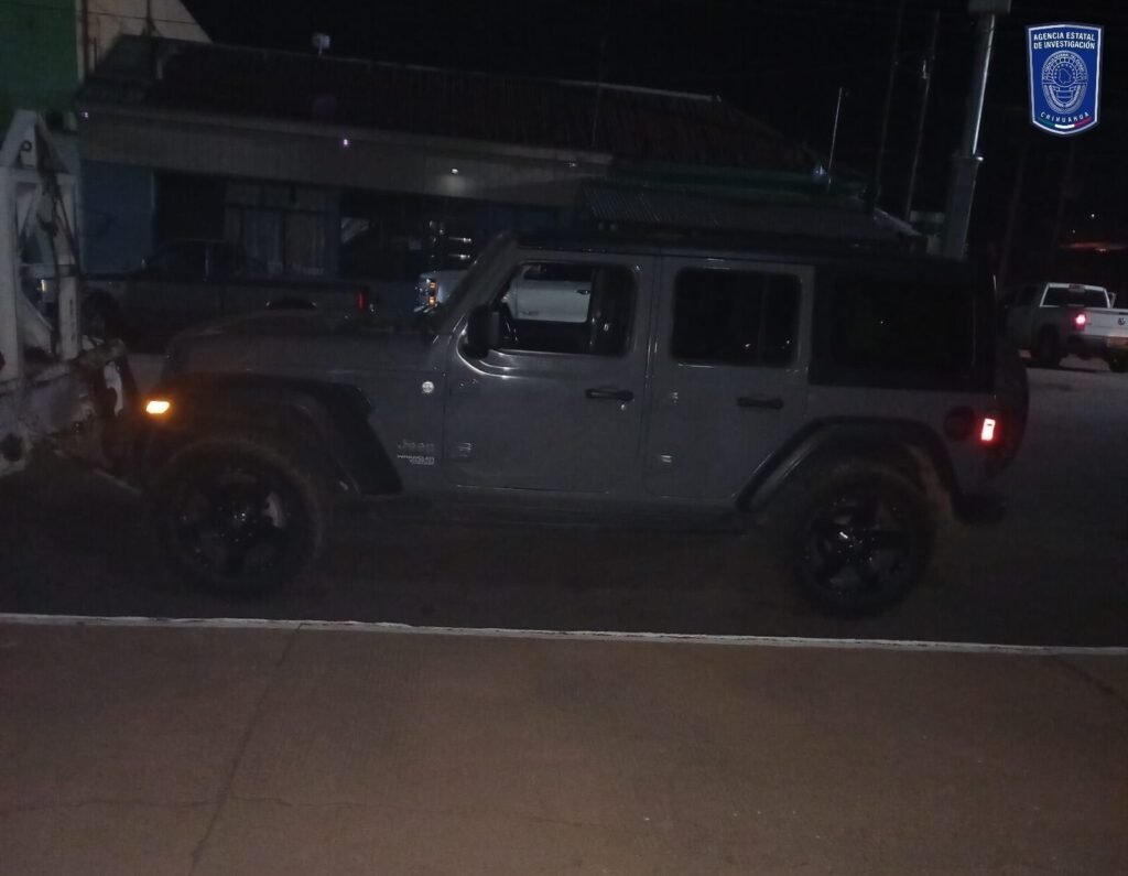 En la calle Abraham González de la ciudad de Madera, encontraron un automotor de la marca Jeep, línea Wrangler, modelo 2020, sin placas de circulación, con reporte de robo interpuesto el 17 de noviembre de 2020, en el estado de Arizona.
