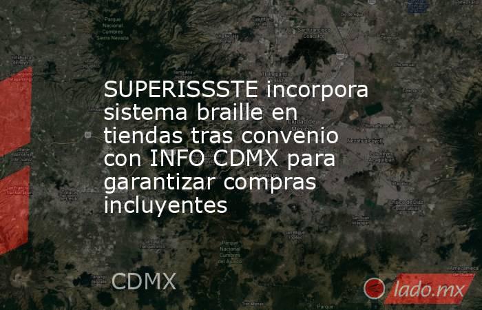 La red de tiendas SUPERISSSTE integrará el sistema braille en la información de sus productos, tras la firma de un convenio de colaboración con el INFO CDMX, Acceso a la Información Pública, Protección de Datos Personales y Rendición de Cuentas de la Ciudad de México (INFO CDMX).