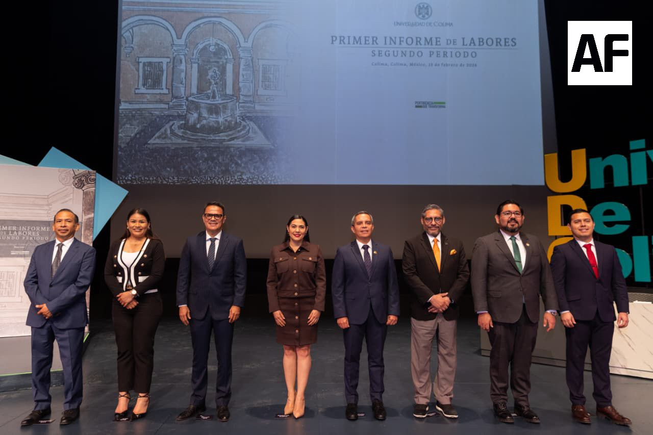 COLIMA.- La gobernadora de Colima, Indira Vizcaíno Silva, asistió este viernes al primer informe de labores del segundo periodo del rector de la Universidad de Colima (UdeC), Christian Jorge Torres Ortiz Zermeño, en el Teatro Universitario ‘Coronel Pedro Torres Ortiz’; la mandataria señaló que en la entidad se trabaja en coordinación con la Máxima Casa de Estudios para abatir la deserción escolar en nivel superior a través de la ampliación de cobertura y apoyos a través de programas como #ColiBecas.