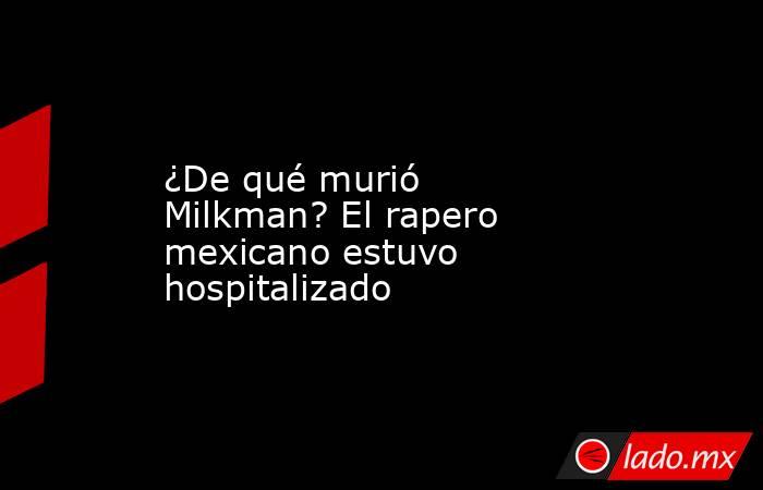 El cargo ¿De qué murió Milkman? El rapero mexicano estuvo hospitalizado apareció primero en El Arsenal.