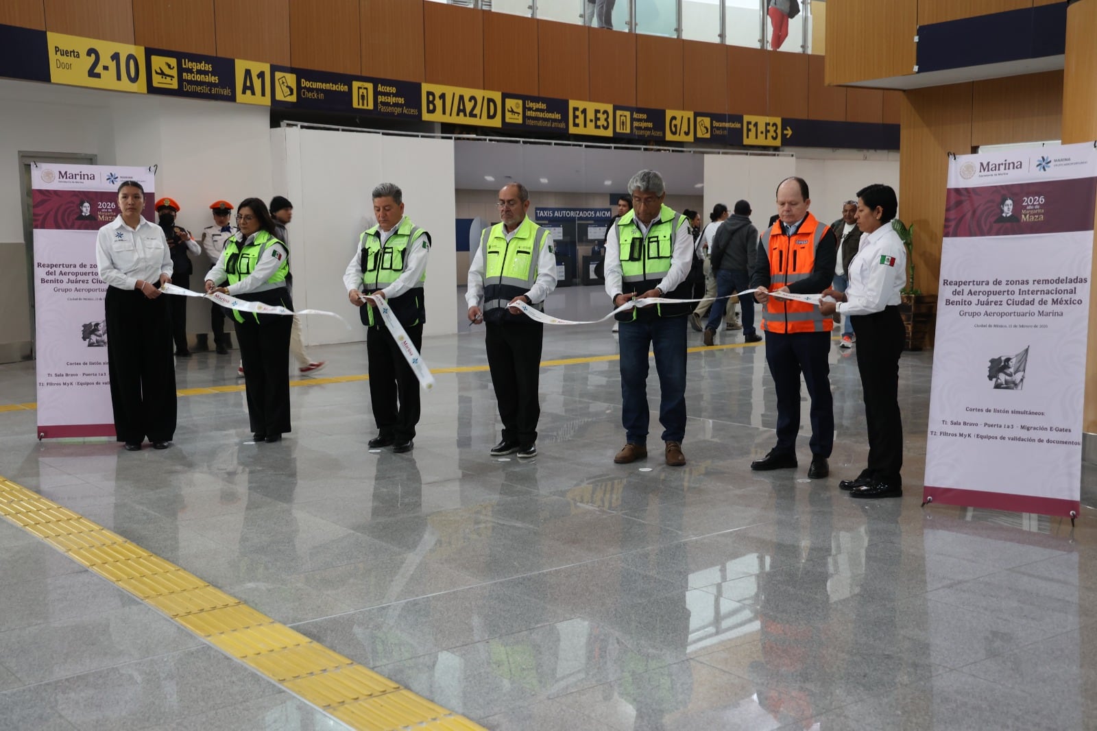 Una ceremonia encabezada por el Secretario de Marina, Almirante Raymundo Pedro Morales Ángeles, marcó la reapertura de cuatro áreas remodeladas en las terminales 1 y 2 del principal aeropuerto de México, que ahora cuentan con tecnología de última generación y mejoras orientadas a la seguridad y comodidad de los pasajeros.